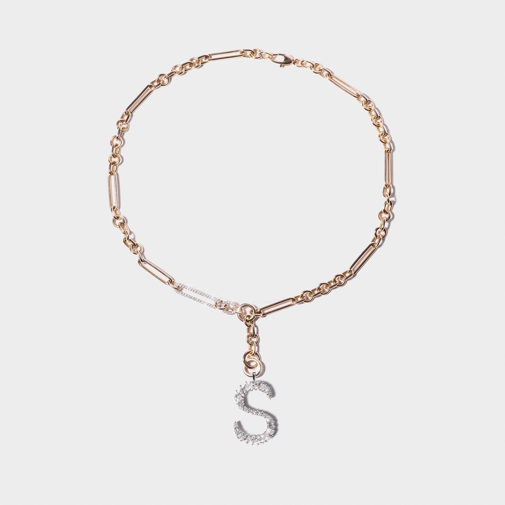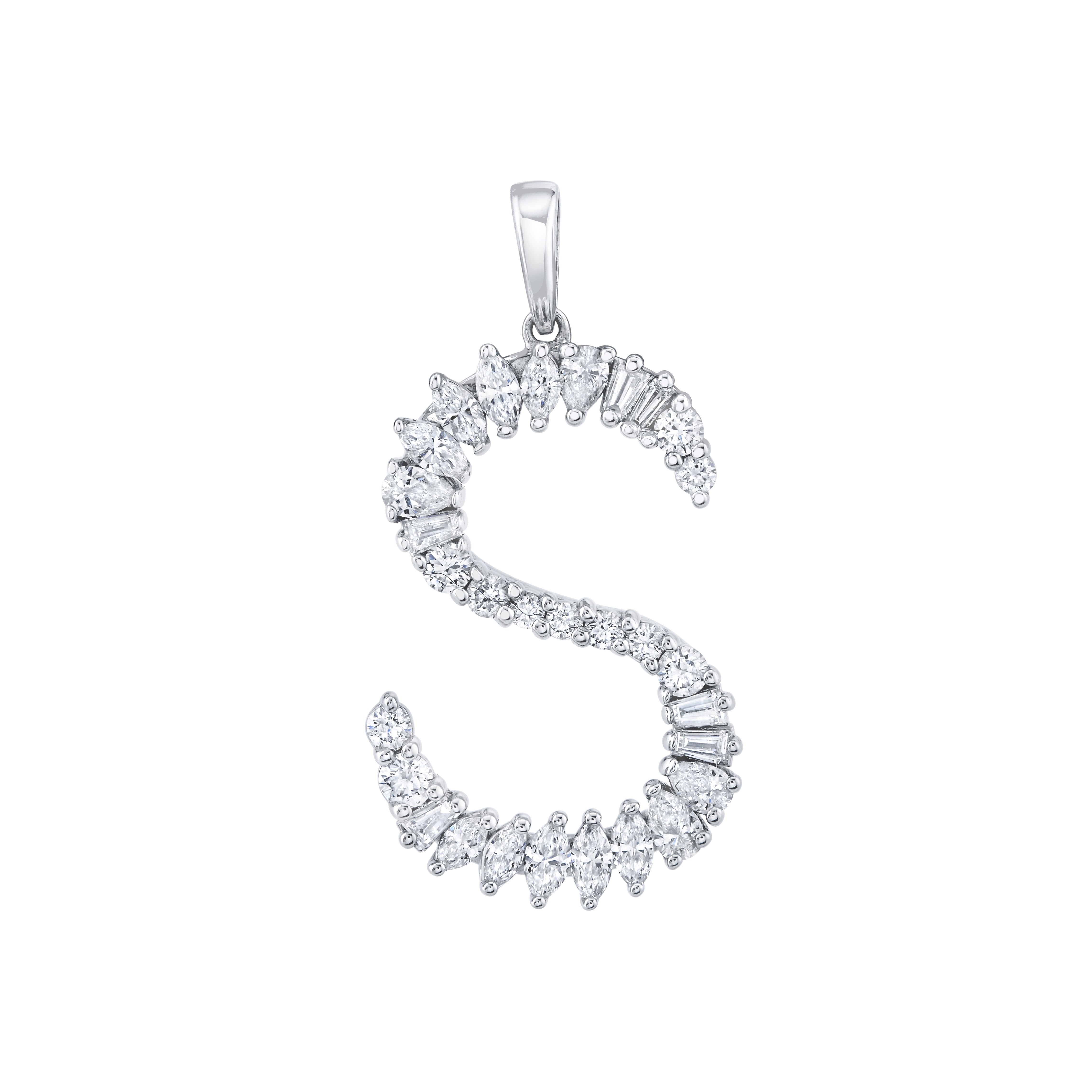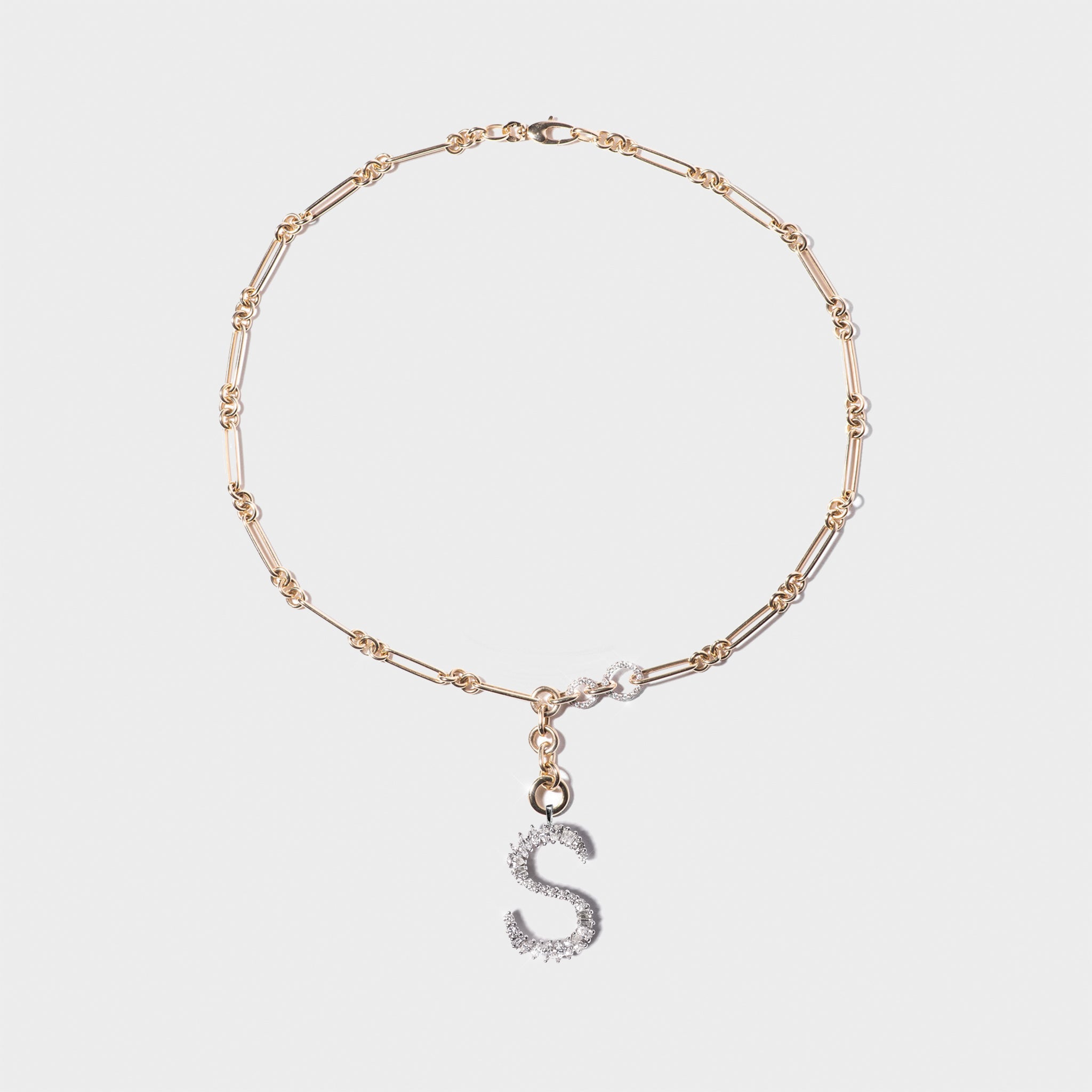 Wear your S initial or commemorate someone special with this initial charm. The S initial is handcrafted in 14-karat gold and set with mixed cut diamonds, made to be worn in your own way with any chain to tell your story. The image shows the initial in white gold but the piece can be made in yellow and rose gold.